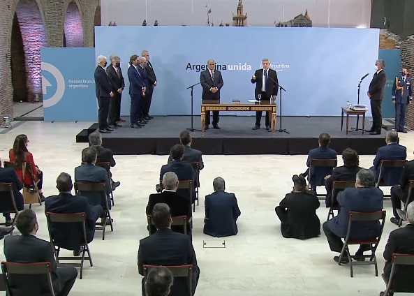 Al acto asistieron los gobernadores de Misiones, Oscar Herrera Ahuad; de Catamarca, Raúl Jalil; de Buenos Aires, Axel Kicillof; de Santa Fe, Omar Perotti; de La Rioja, Ricardo Quintela; de Salta, Gustavo Sáenz, y de Santiago del Estero, Gerardo Zamora, además participaron por videoconferencia los mandatarios de Entre Ríos, Gustavo Bordet; de Formosa, Gildo Insfrán; de Santa Cruz, Alicia Kirchner, y de Tierra del Fuego, Gustavo Melella, y el vicegobernador de San Juan, Roberto Gattoni.