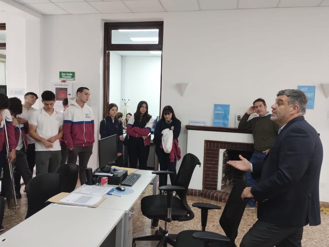 El pasado miércoles, como parte de la actividad práctica de la materia Trabajo y Ciudadanía, los alumnos de 6to. Año del Instituto San Jorge de nuestra ciudad, realizaron una visita a la Agencia Territorial Junín del Ministerio de Trabajo, Empleo y Seguridad Social de la Nación donde fueron recibidos por su jefe Dr. Fernando Burgos, acompañado por funcionarios de dicho organismo, para que explicaran a los alumnos, sobre las actividades que desarrolla el Ministerio en el territorio, en ese marco se les explico el Programa de Regularización del Empleo no Registrado y sus consecuencias de la inscripción de los empleadores infractores, por tener trabajadores no registrados como también se les informo sobre Programas de Inserción Laboral para jóvenes y la mejora de empleabilidad a través de la formación profesional y capacitación.