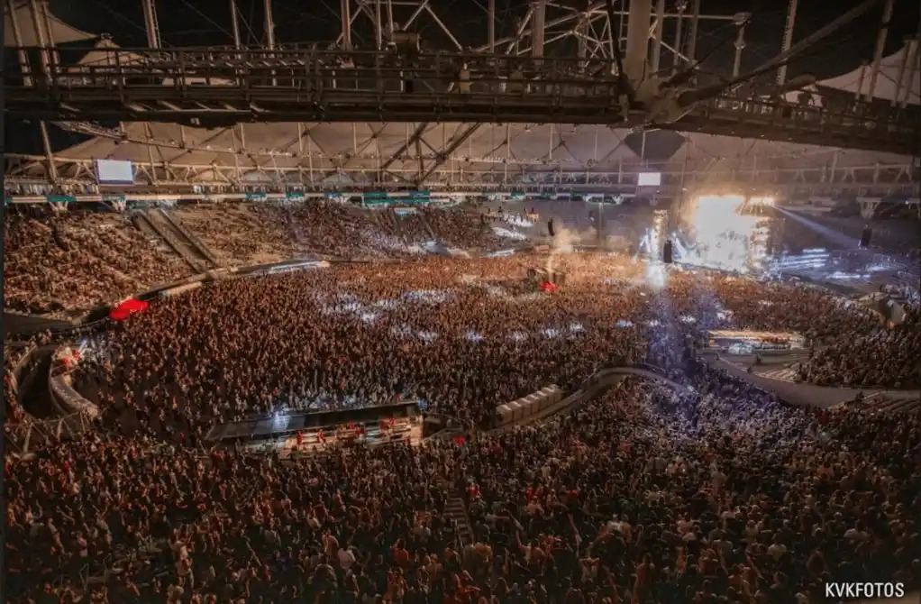 La Plata volvió a convertirse en tierra sagrada ricotera este fin de semana. Los Fundamentalistas del Aire Acondicionado celebraron los 20 años de su primer concierto —aquel histórico 2005 en el mismo Estadio Único— y en el primero de los dos shows consecutivos el público que agotó en horas la primera fecha, desbordó de mística y devoción. El sábado 6 fue la primera misa, con un Estadio Diego Maradona colmado y la ciudad teñida de remeras, banderas y peregrinación desde temprano; este domingo 7, la segunda función completa el ritual.