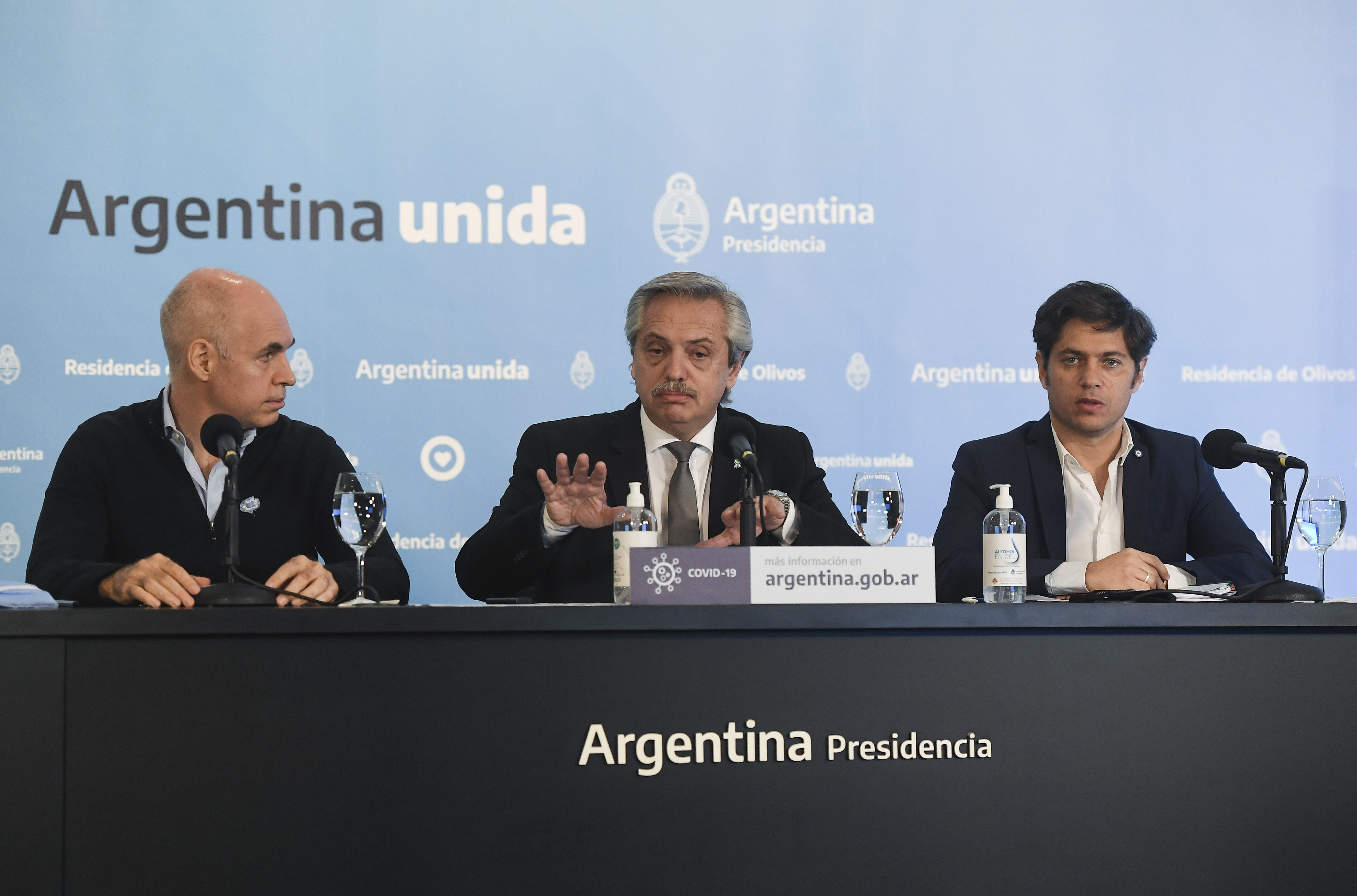 Al hablar esta noche en la residencia de Olivos, junto al jefe de Gobierno porteño, Horacio Rodríguez Larreta, y el gobernador Axel Kicillof, el Presidente aseguró que en el Área Metropolitana de Buenos Aires (Amba) “el virus está circulando por las calles” y anunció un reempadronamiento de los exceptuados del cumplimiento de la cuarentena, que deberán volver a tramitar el Certificado Único Habilitante para Circulación a través de la aplicación Cuidar.