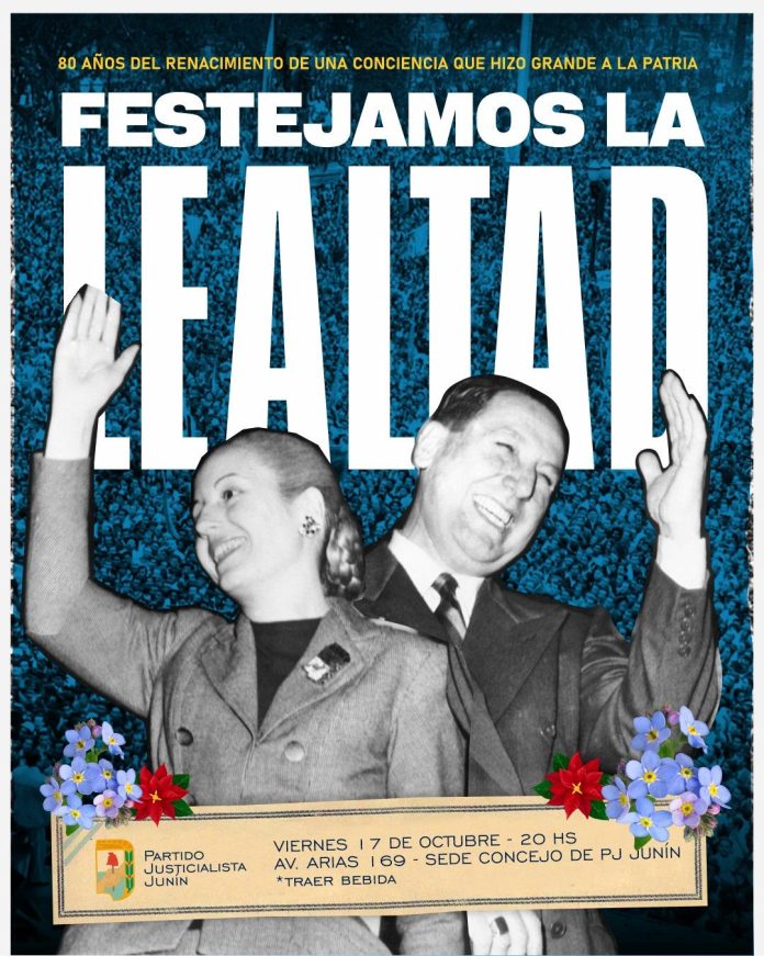 El próximo viernes 17 de octubre, desde las 20 horas, el Consejo del Partido Justicialista de Junín llevará adelante el acto oficial celebrando los 80 años del Día de la Lealtad Peronista, una fecha emblemática en la historia del movimiento nacional y popular.