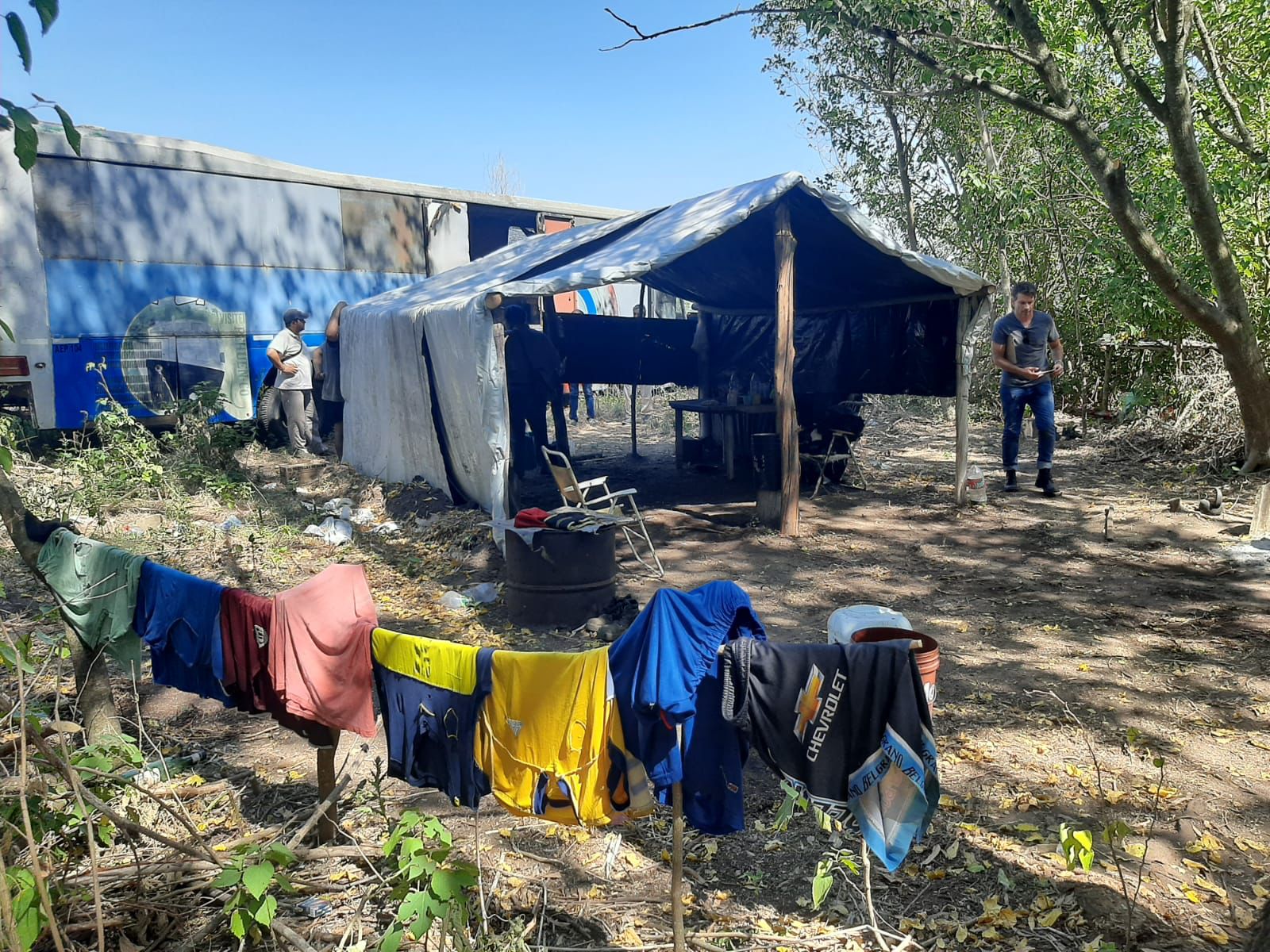 Con relación a las condiciones habitacionales, los denunciantes observaron que los cuatro trabajadores vivían en un micro ómnibus y en una casilla en malas condiciones de salud e higiene, no contaban baño, heladera ni cocina y debían higienizarse con baldes en un sector improvisado fuera del micro, compuesto por lonas y sostenido por ramas. No contaban con luz eléctrica y se les proveía agua que debían utilizar para beber, cocinar, asearse y limpiar los elementos de cocina.