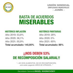 Teniendo en cuenta estos números, desde la USEMJ reclaman: “Nos deben 53% de recomposición salarial”.