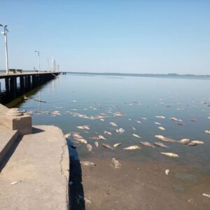 La sequía, que provoca un bajo caudal en el espejo de agua, sumada al calor reinante, serían las causas de esta situación que afecta aún más la población ictícola de la Laguna.