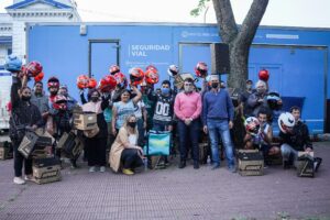 En una acción conjunta entre la Agencia Nacional de Seguridad Vial y la Fundación Ciudad Abierta, más de 140 trabajadores que realizan sus tareas en moto, fueron capacitados y además recibieron de regalo un casco y un chaleco refractario.