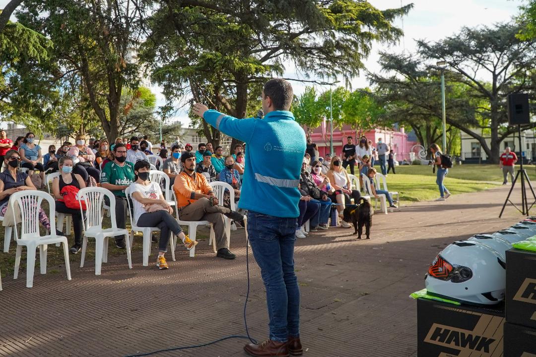 “La capacitación es la mejor herramienta que tenemos para decirle a la gente que tenemos la obligación de cuidarnos. El 60% de los fallecidos en accidentes son conductores de motos y tenemos que revertir esta situación cuidando la vida y teniendo un estado presente. Como lo estamos haciendo hoy, entregando cascos”, afirmó López.