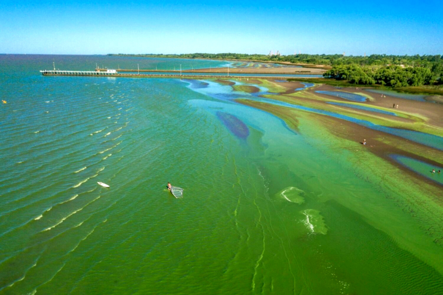 En ese sentido, en el agua se ve un color verde brillante en la superficie y en la arena y, según la Subsecretaría de Recursos Hídricos, se recomienda: